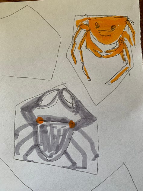 How to build with shapes (in shapes), such as the crab inside a shape (Can you tell that we’re all about shapes in this workshop?!)